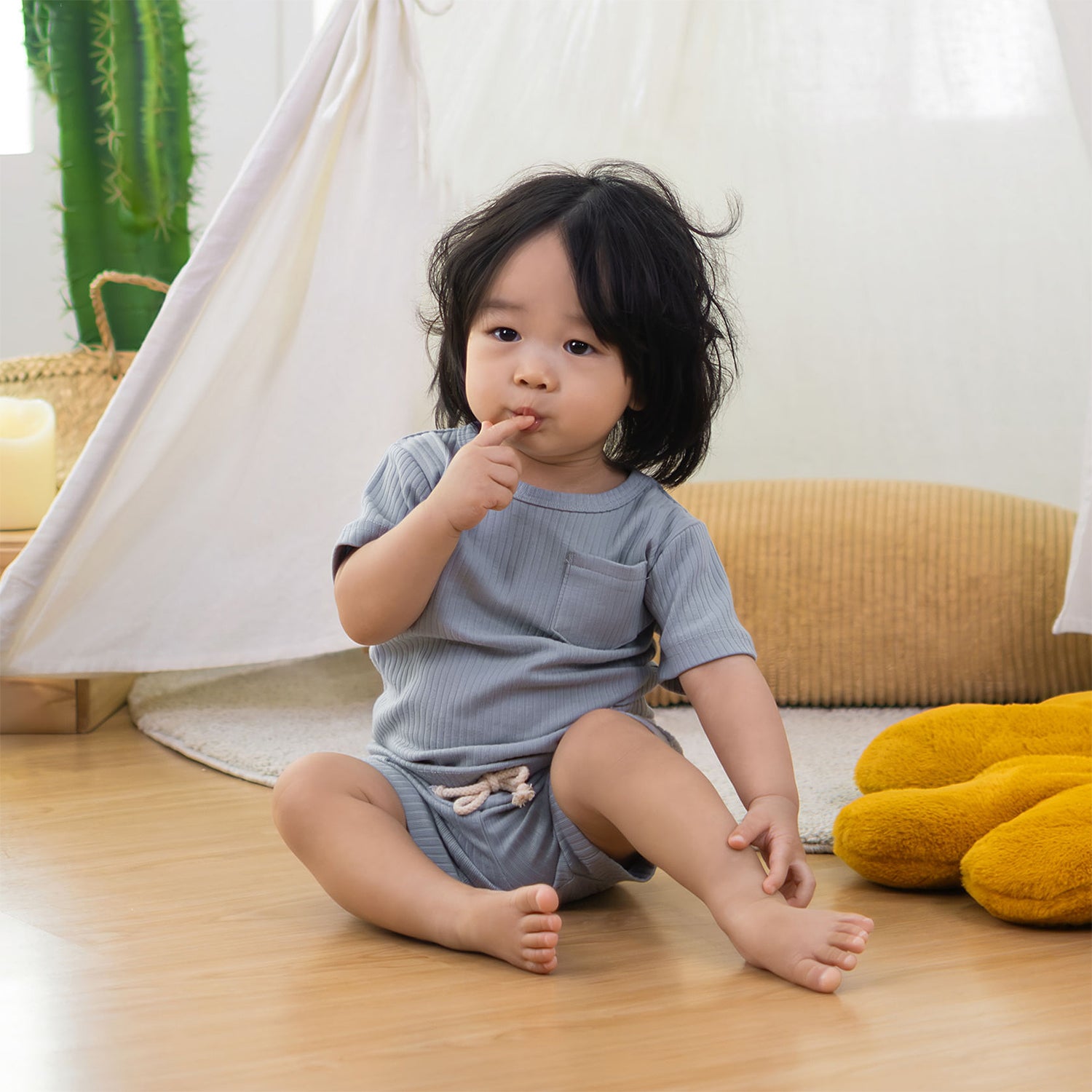 Our Cozy Lounge Set is made for easy days and endless play. The fabric is 100% GOTS certified organic cotton that is soft, breathable and gentle on tiny skin. It is non toxic and hypoallergenic, making it safe for daily wear. Light, comfortable and perfect from morning to bedtime. The everyday essential every child reaches for