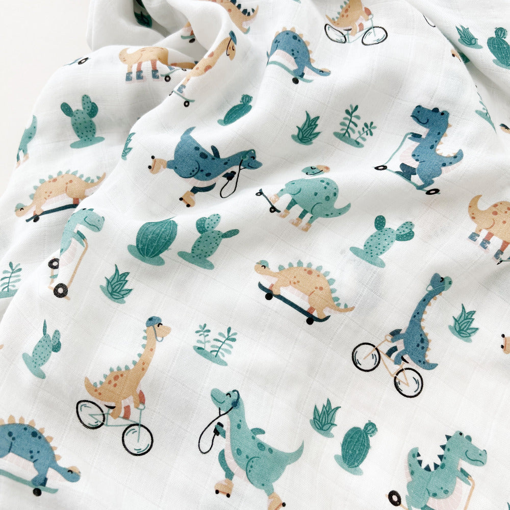 Organic Cotton Bamboo Swaddle Dinosaur Bicycle